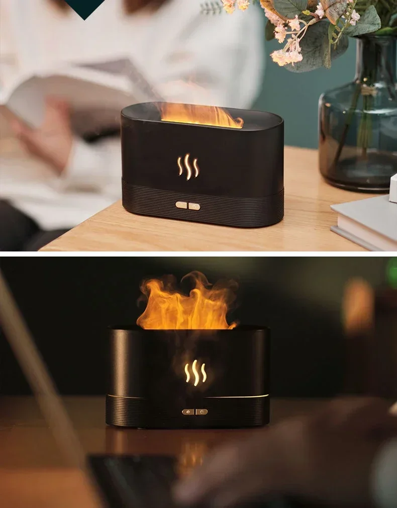 Perfume Humidifier Simulation Flame Aromatherapy Diffuser LED Ultrasonic Air Humidifier Creative Gift Essential Oil Flame Lamp